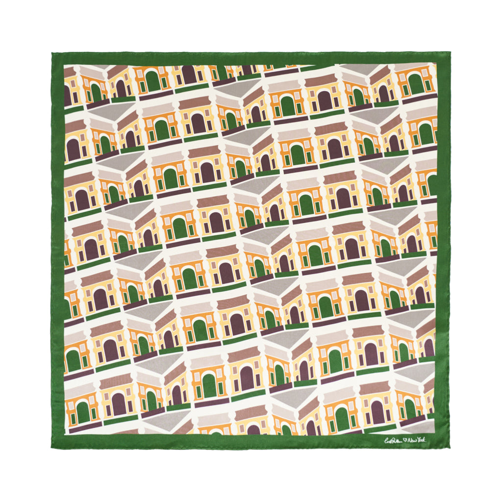 This silk scarf is designed by our chief designer Cata to give you a glimpse into our New York City memories and culture. It is an ode to the city we love, and an excellent addition to your wardrobe. The scarf edges are hand-rolled and hand stitched by our local artisans to honor traditional silk making. The tag is designed to be recycled as a coaster to show our commitment to sustainability in Fashion.