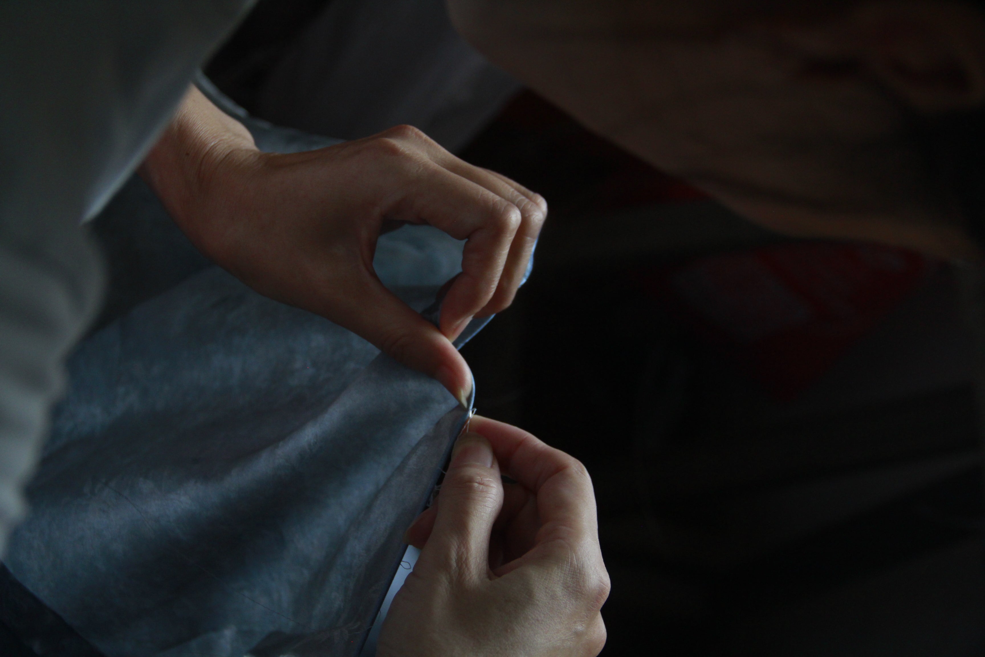 In Hangzhou, the heart of China’s silk heritage, we proudly preserve the tradition of hand-rolled edges—a technique that reflects true artistry and craftsmanship. Every Lost Pattern scarf is hand- finished by local artisans, affectionately called our “aunties,” who work from the comfort of their own homes. This home-based model allows them to balance their craftsmanship with family responsibilities—cooking for loved ones, caring for grandchildren, and participating in daily village life.